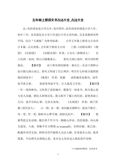 五年级上册古诗词全部
