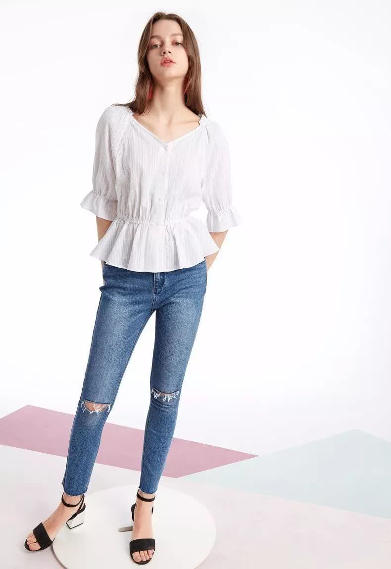 短款上衣+高腰裤 矮个女生显高穿法拉长
