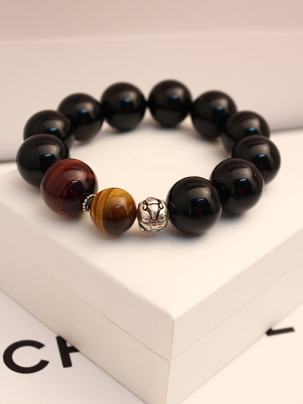 粗犷男士手链 红虎眼黑玛瑙招财925泰银