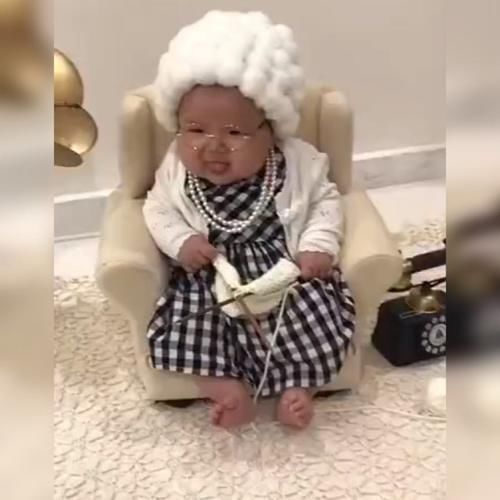 宝宝被打扮成脑白金奶奶火了,网友:好萌,