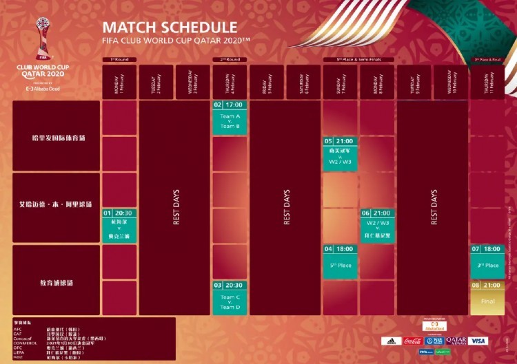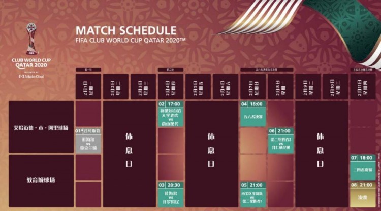2020卡塔尔世俱杯赛程:拜仁从半决赛打起
