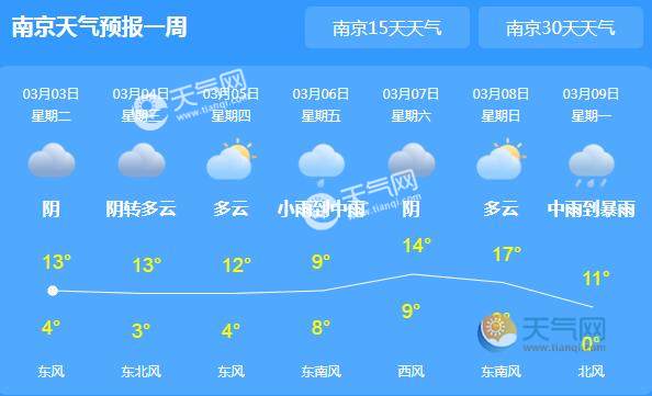 这几天江苏阴雨绵绵 南京体感寒冷气温仅