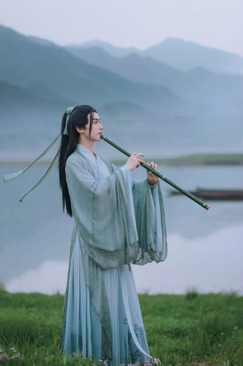 吹箫凌极浦,日暮送夫君。 湖上一回首,山青