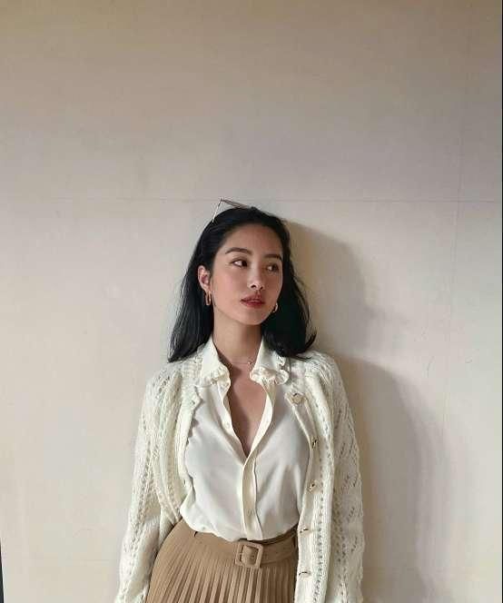 被58岁陈金飞宠成花的杨采钰,穿衬衫只系