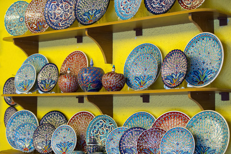 用手画的装饰陶瓷碟。艺术, 手工制作