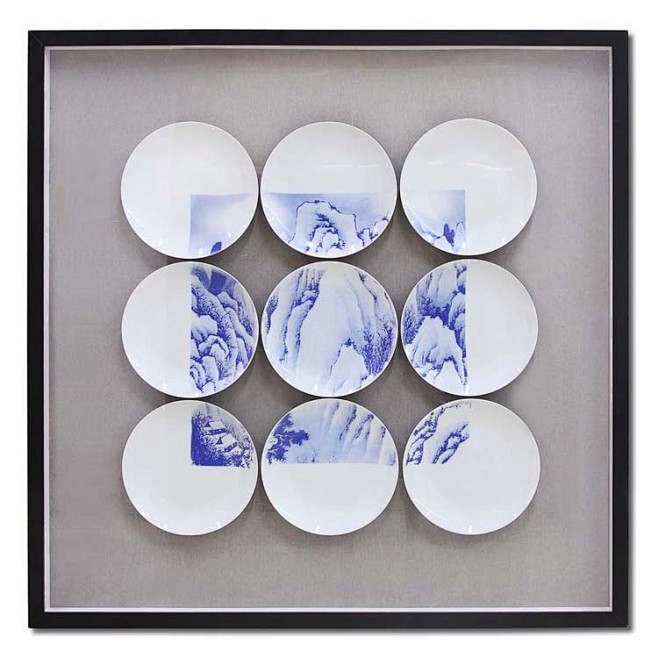 样板间实物画黑白色 陶瓷瓷盘装饰画竖幅