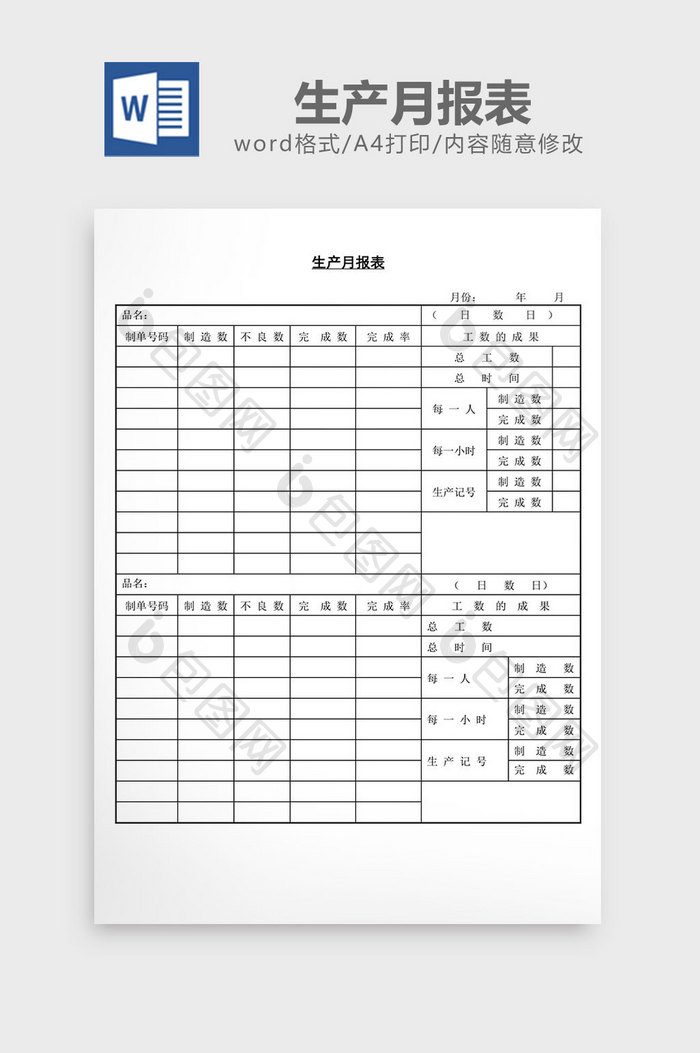 生产月报表word文档模板免费下载_DOC图片设计素材_【包图网】