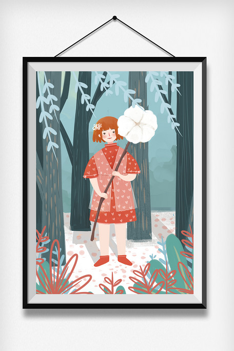小清新插画小森林女孩旅行