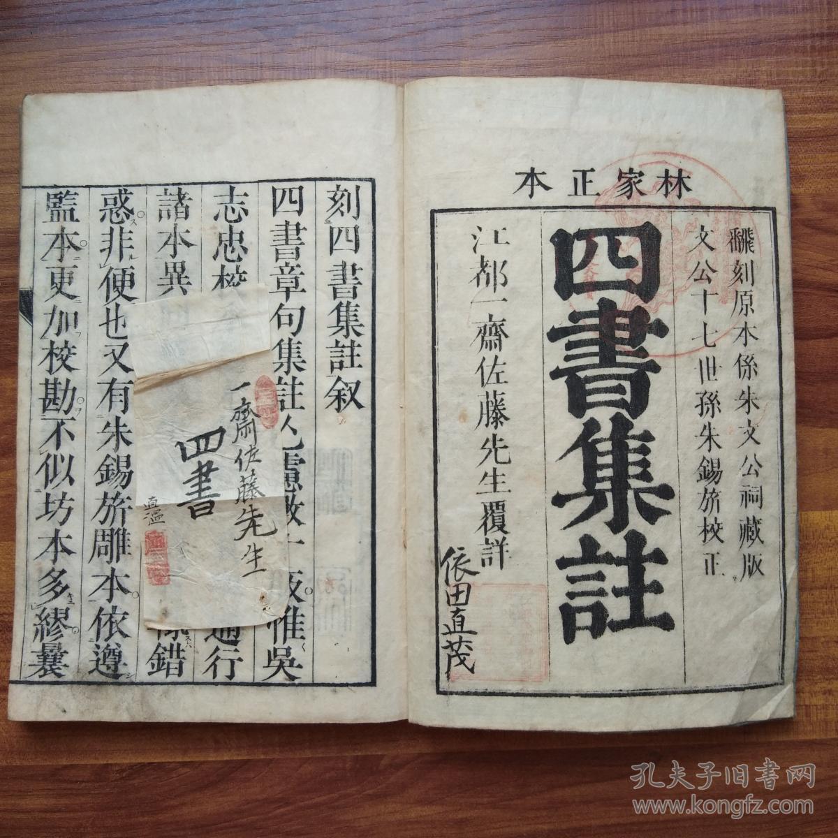 清代古籍 木刻本《 四书集注》之《大学》 朱熹章句 一册全 林家正本 雕刻原本系朱文公祠藏版 朱文公十七世孙朱锡旗校正 文政八年(1825年) 有图章印章