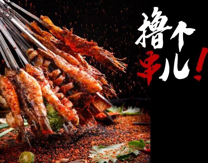 黑色美食美味烧烤撸串简约照片拼图