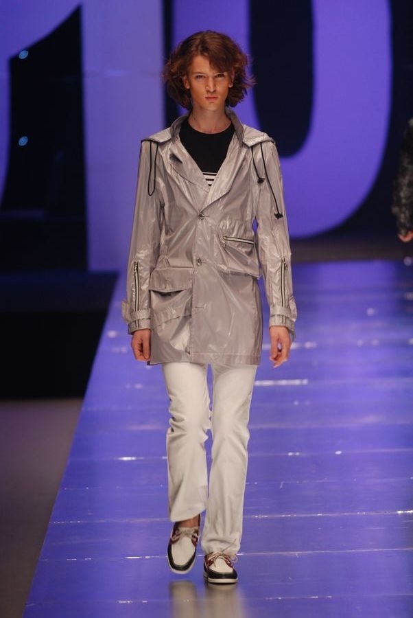 银灰色风衣外套搭配白色长裤