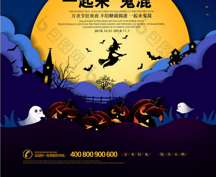 神出鬼没万圣节矢量图免费下载_psd格式_
