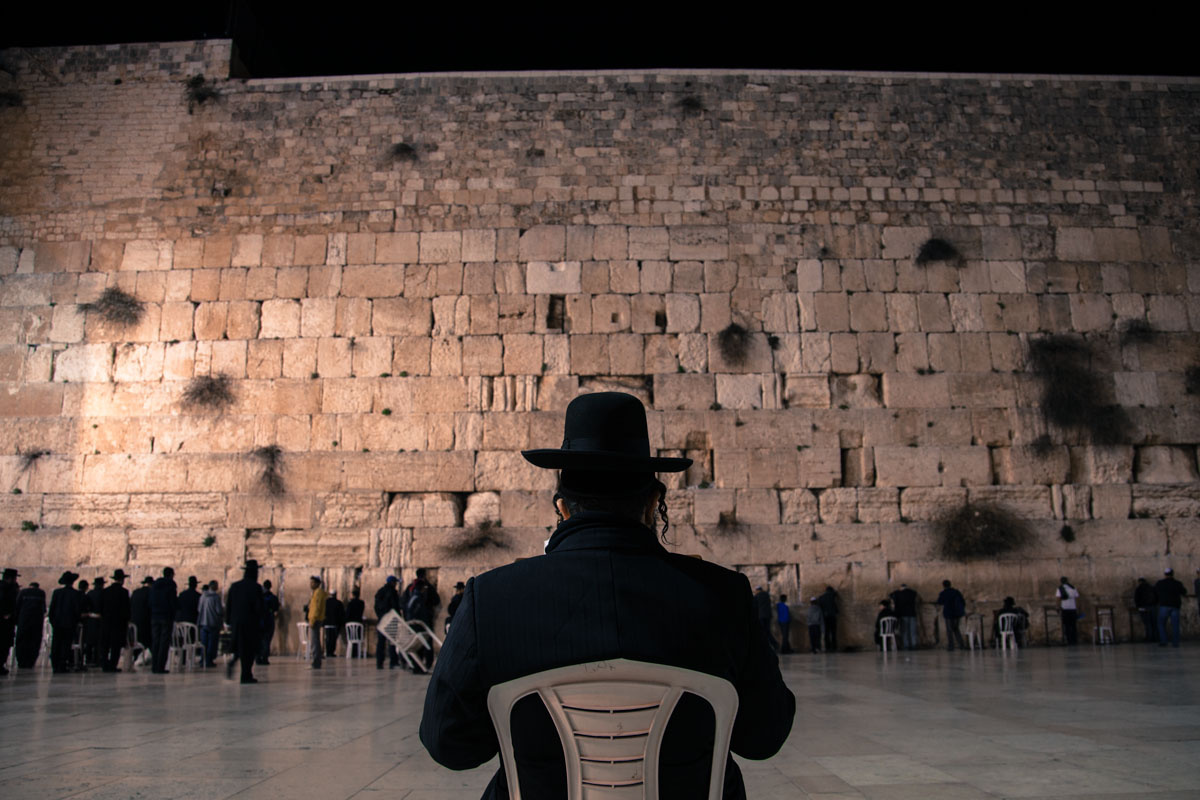 哭墙夜拍 夜晚降临,仍有许多犹太教徒在哭墙下