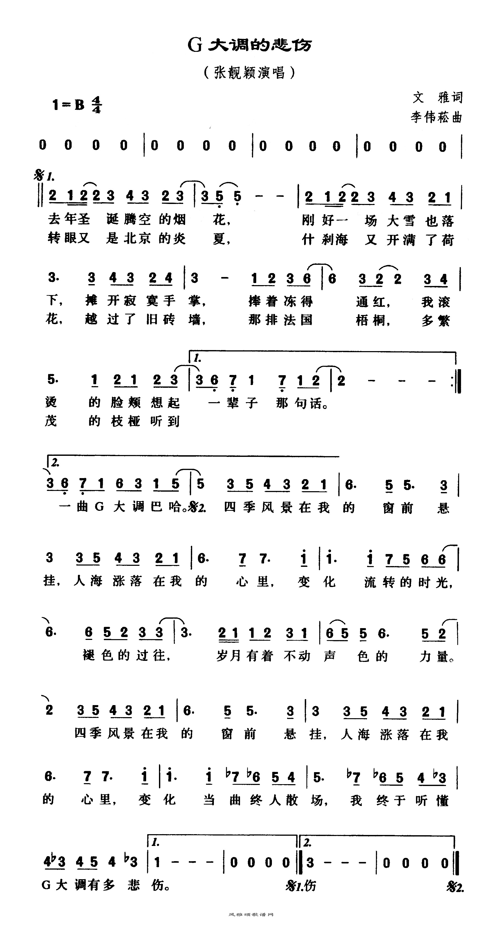 张靓颖【G大调的悲伤】歌曲曲谱歌谱简谱