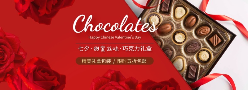 巧克力七夕情人节礼物红色创意电商全屏海报