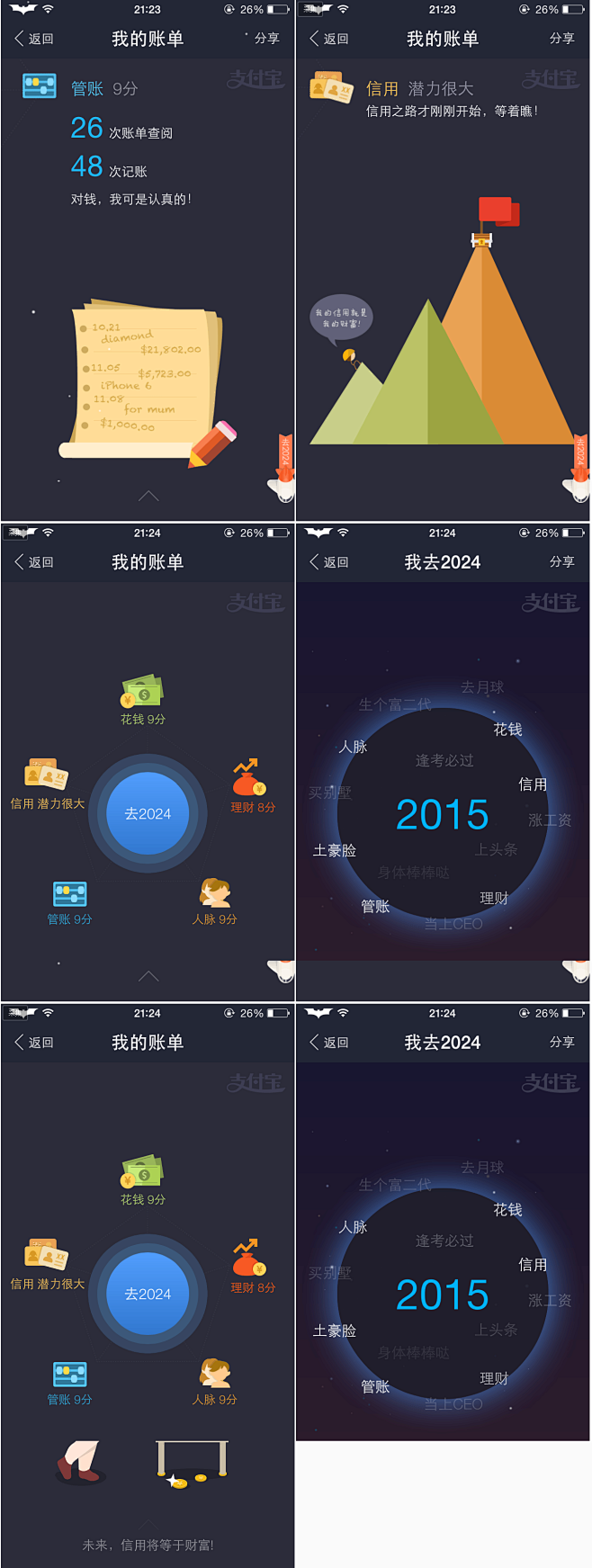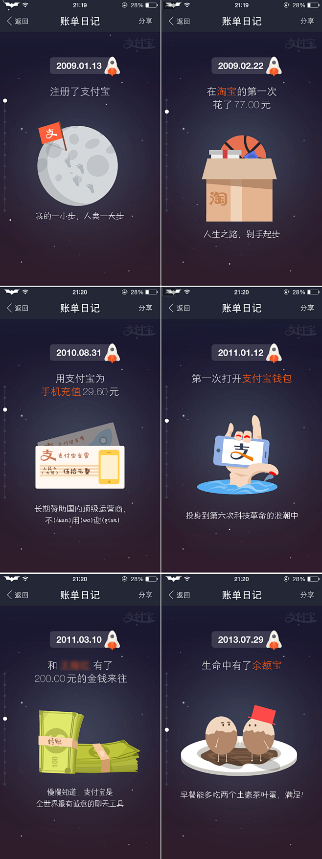 移动 APP 活动页 支付宝钱包 十年账单日记