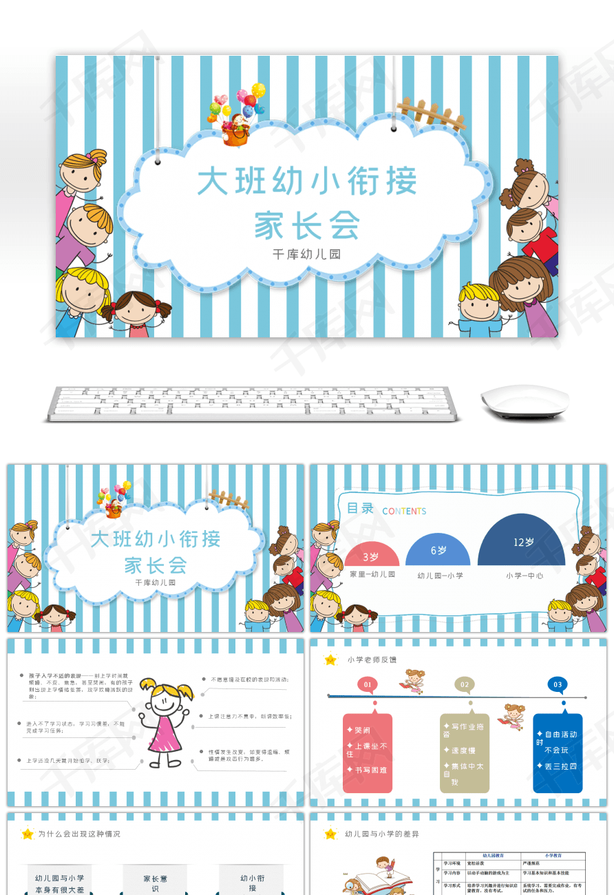 蓝色卡通幼小衔接家长会PPTppt模板免费下载-PPT模板
