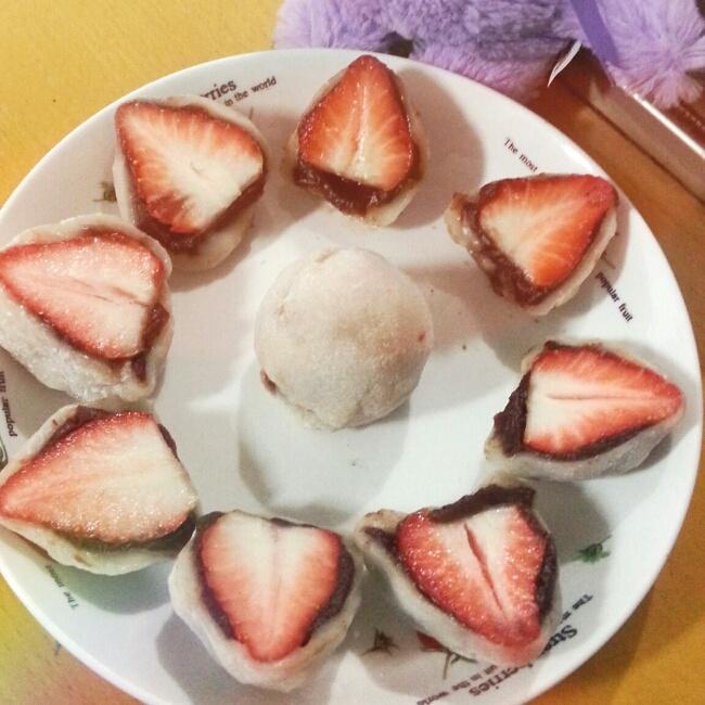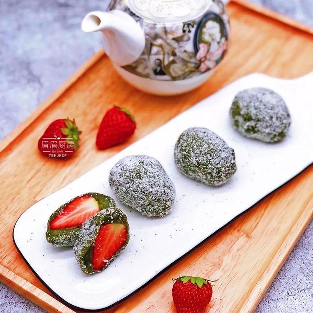 抹茶草莓大福,做法简单|草莓|抹茶|澄粉