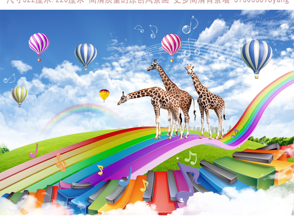 儿童房间长颈鹿彩虹桥梦幻3D电视背景墙