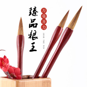 高档狼毫毛笔原木杆长峰神狼狼毫毛笔书法