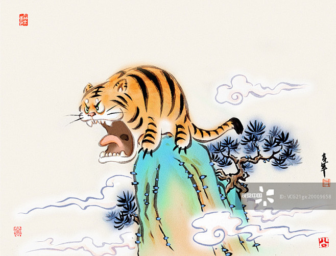 看我画的虎啸山林图!把老虎画得多么的威猛