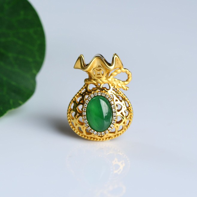 G18K冰种满绿翡翠钱袋吊坠_项饰_翡翠