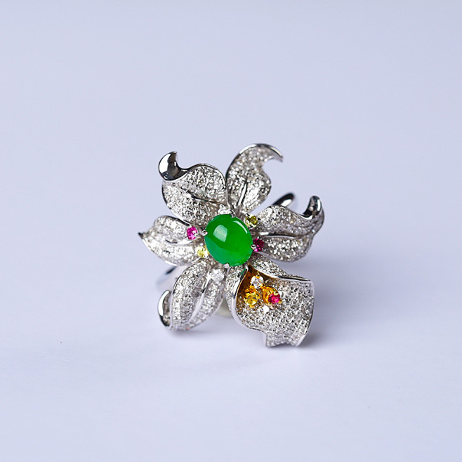 G18K冰种满色翡翠花形戒指 圈口16#_戒指