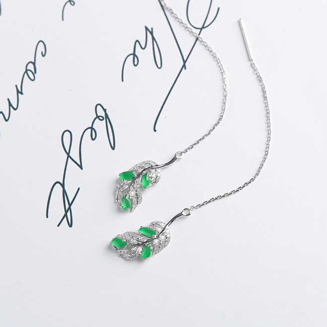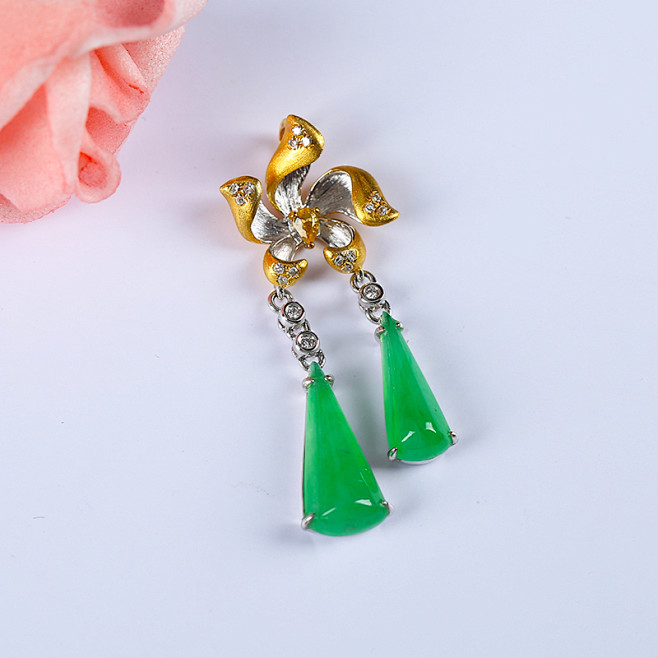 G18K钻冰种满色翡翠羽毛耳线_耳饰_翡翠