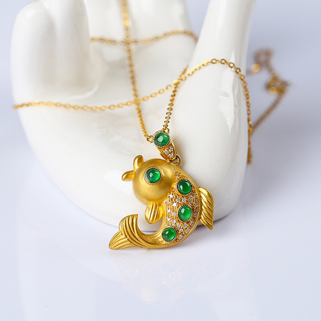G18K冰种满色翡翠小鱼项链_项饰_翡翠
