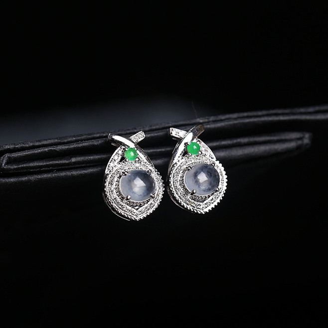 G18K冰种翡翠蛋面耳钉_耳饰_翡翠首饰_