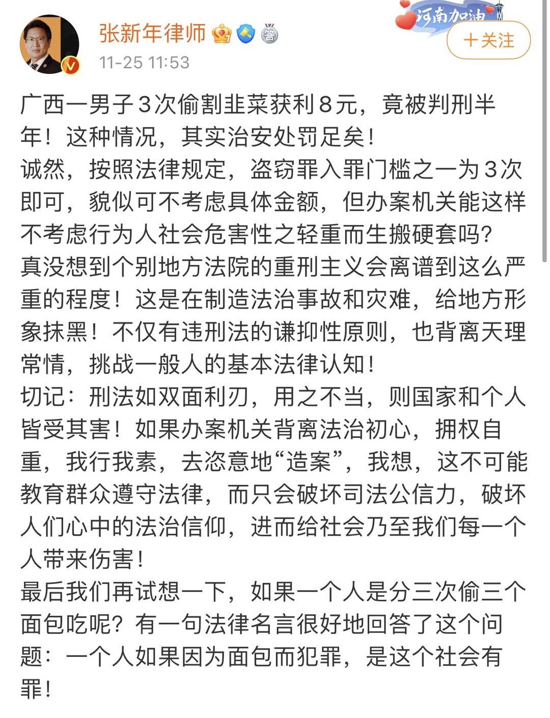 法院回应男子偷韭菜卖8元获刑半年:多次