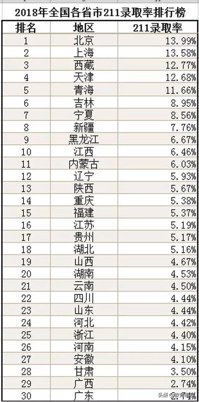 数据:各省市985高校录取率究竟差多少?