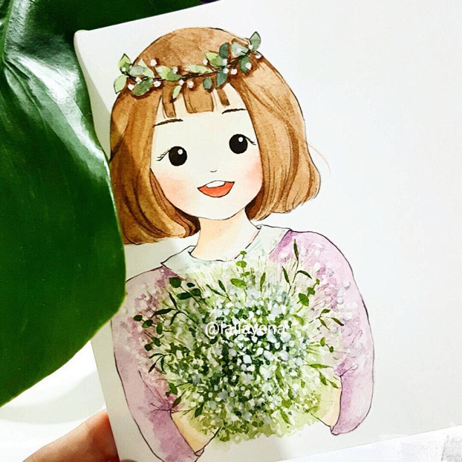 韩国可爱插画 小女孩 萌萌萌 手绘 水彩
