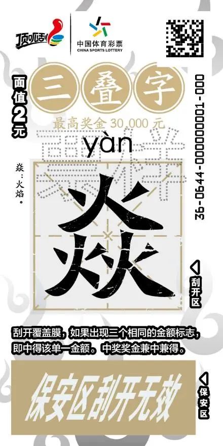 中华文化 体彩顶呱刮新票三叠字火热上市