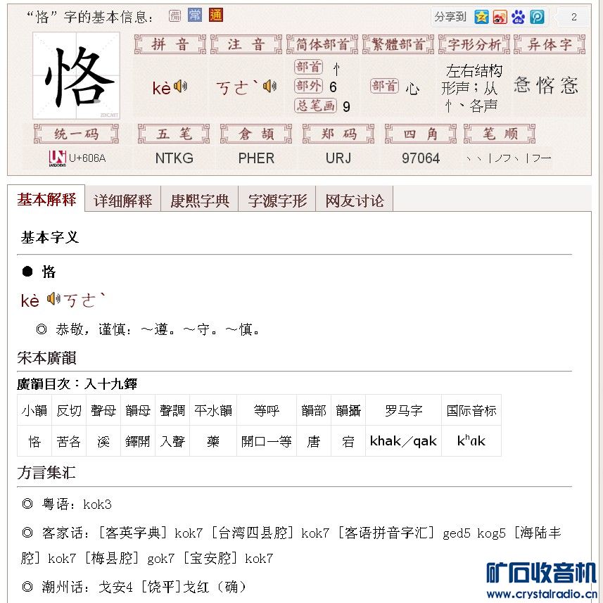 恪字读什么音? - 〓生活聊天板块〓 - 矿石