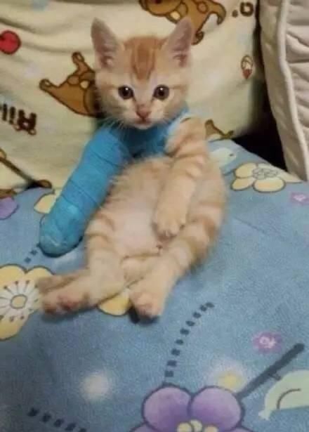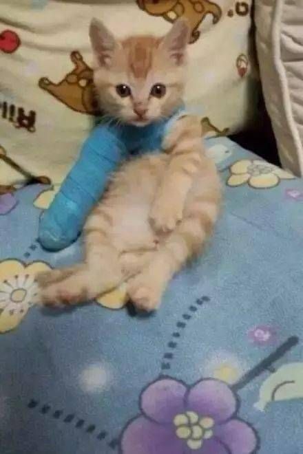 主人给它包扎了腿后,猫咪睡觉的姿势开始