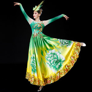 新款吉祥谣藏族舞蹈服开场舞台服饰西藏水袖长袖少数民族装大摆裙