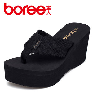 宝人夏季人字拖女沙滩坡跟高跟凉拖鞋时尚