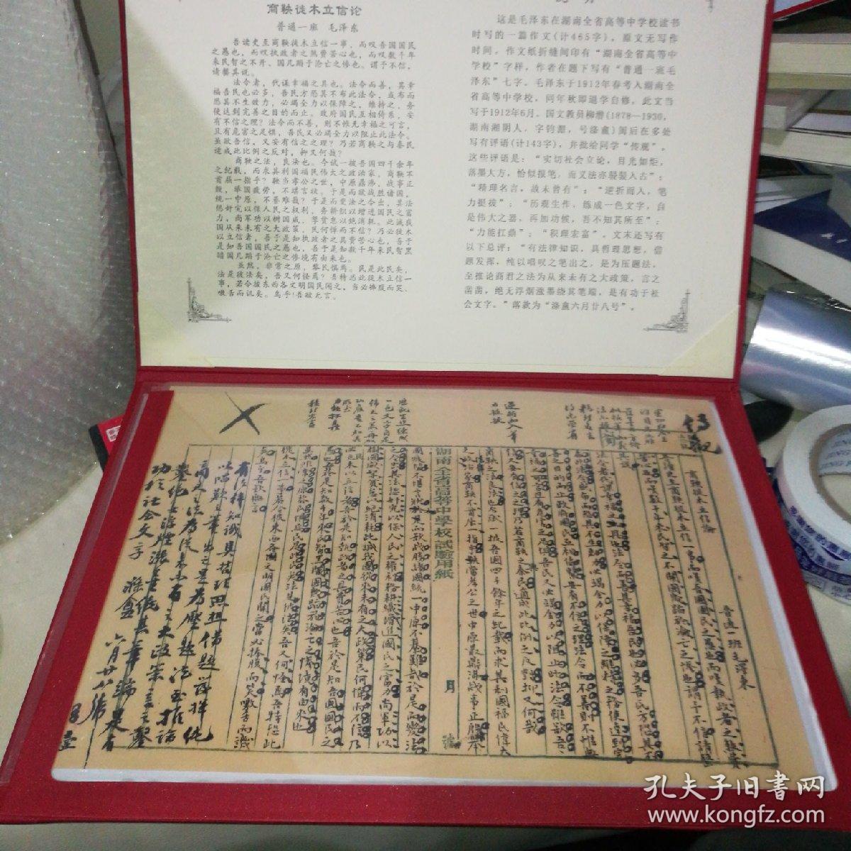 毛泽东中学作文《商鞅徙木立信论》有盒套