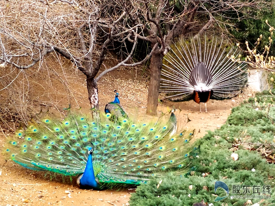 美哉!烟台动物园数只孔雀竞相开屏(组图)