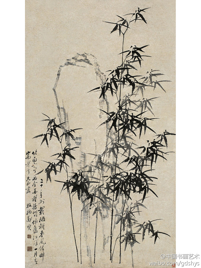 清 郑燮《竹石图》--- 款识:二十年前载酒瓶,