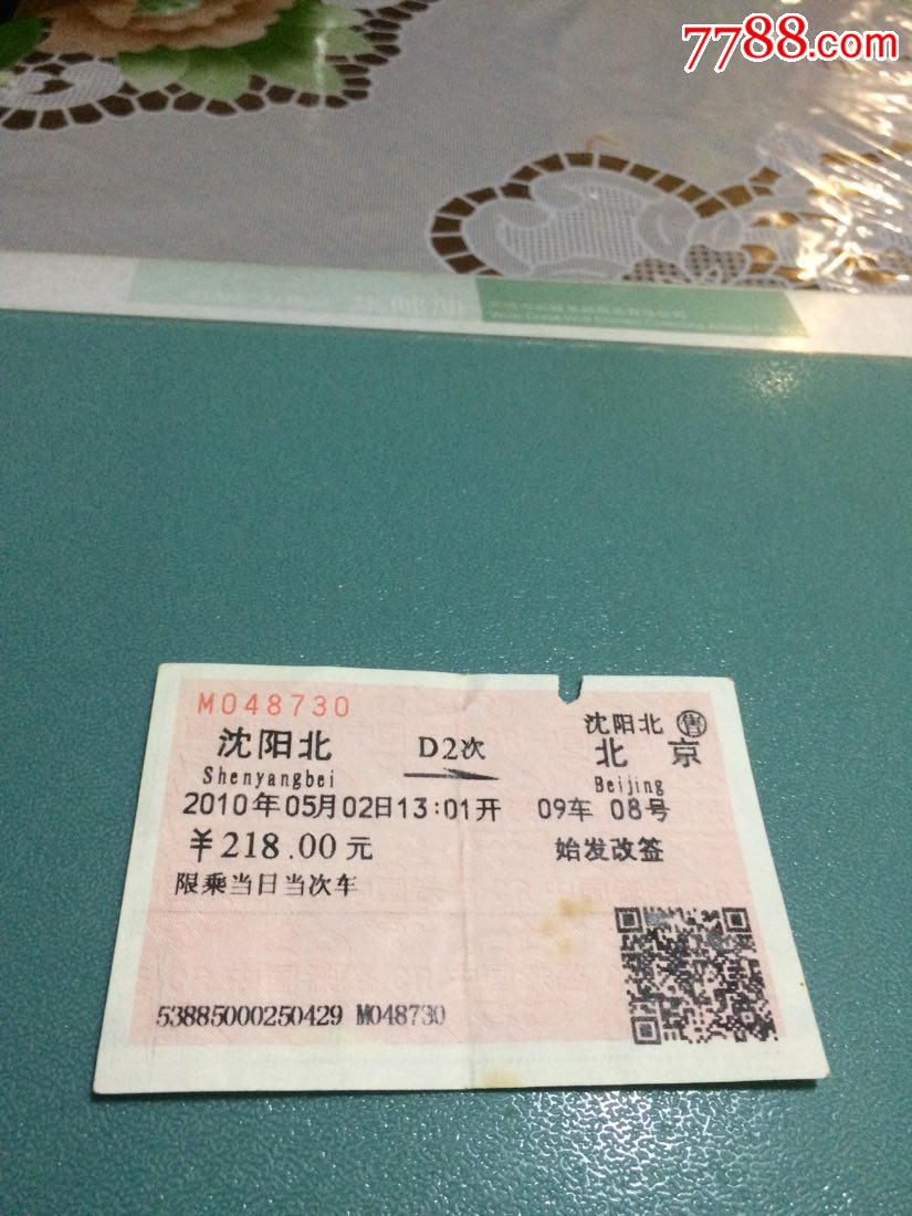 火车票:北京到沈阳北。D9次。和谐号。折!
