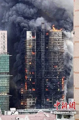上海一高层住宅起火 大火向居民楼里蔓延(