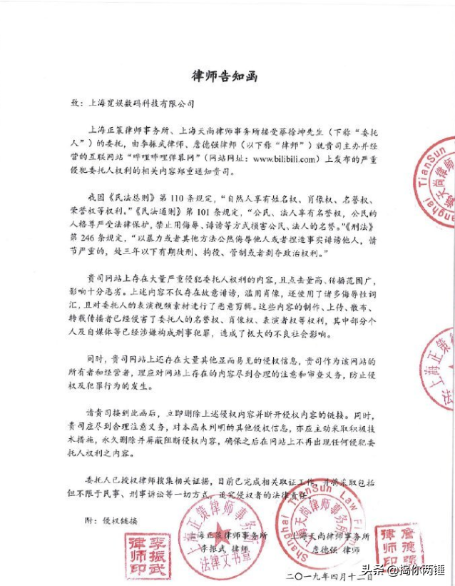 蔡徐坤发律师函警告B站:请停止侵权否则将