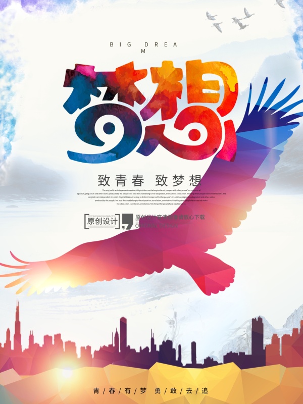 水彩风致青春致梦想海报设计