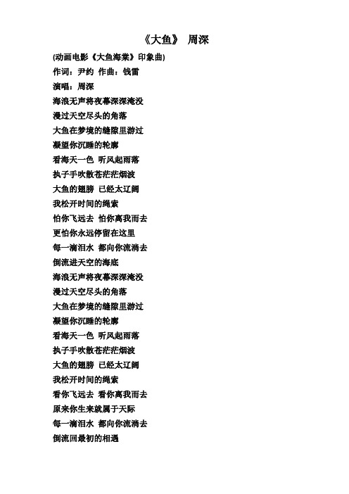 大鱼海棠C调钢琴谱- 雅筑清新乐谱