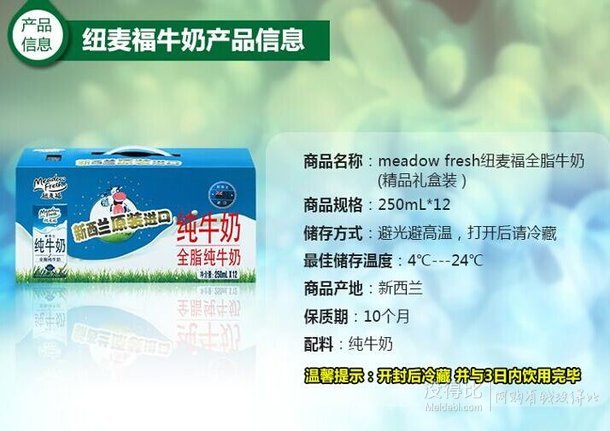 全脂纯牛奶 250ml*12盒\/礼盒19.9元_没得比