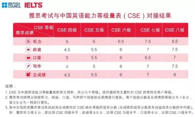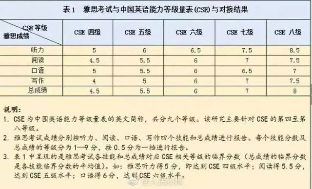 雅思分数与中国英语能力等级量表(CSE)