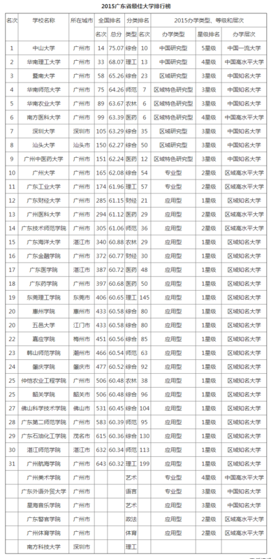 广东省理科一本大学排名