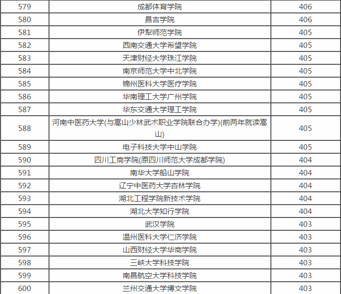 全国二本大学理科录取成绩排名,中优等生